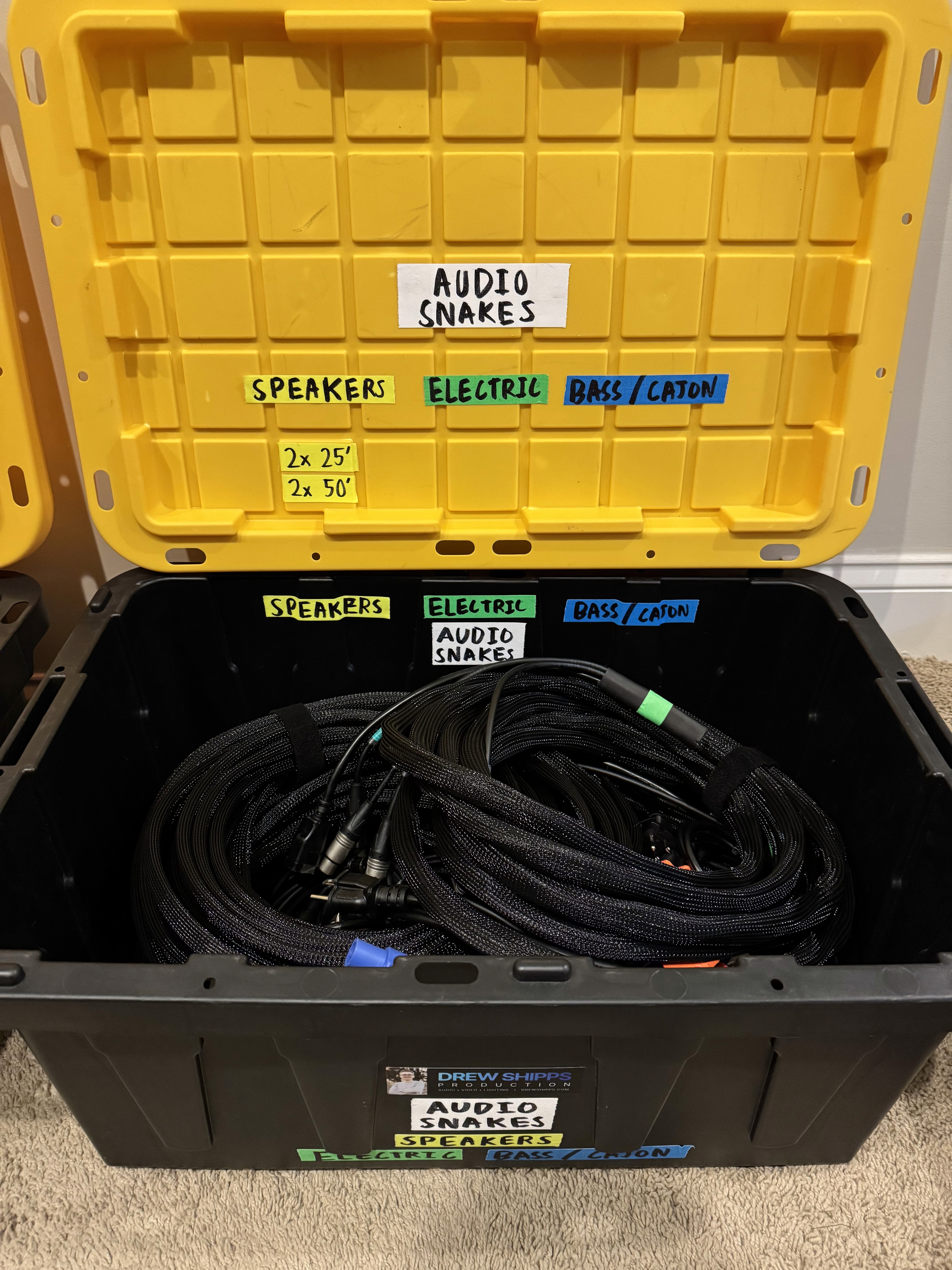 Each snake bundled audio, power, and labeled connections, allowing band members to quickly deploy their station without needing detailed instruction.