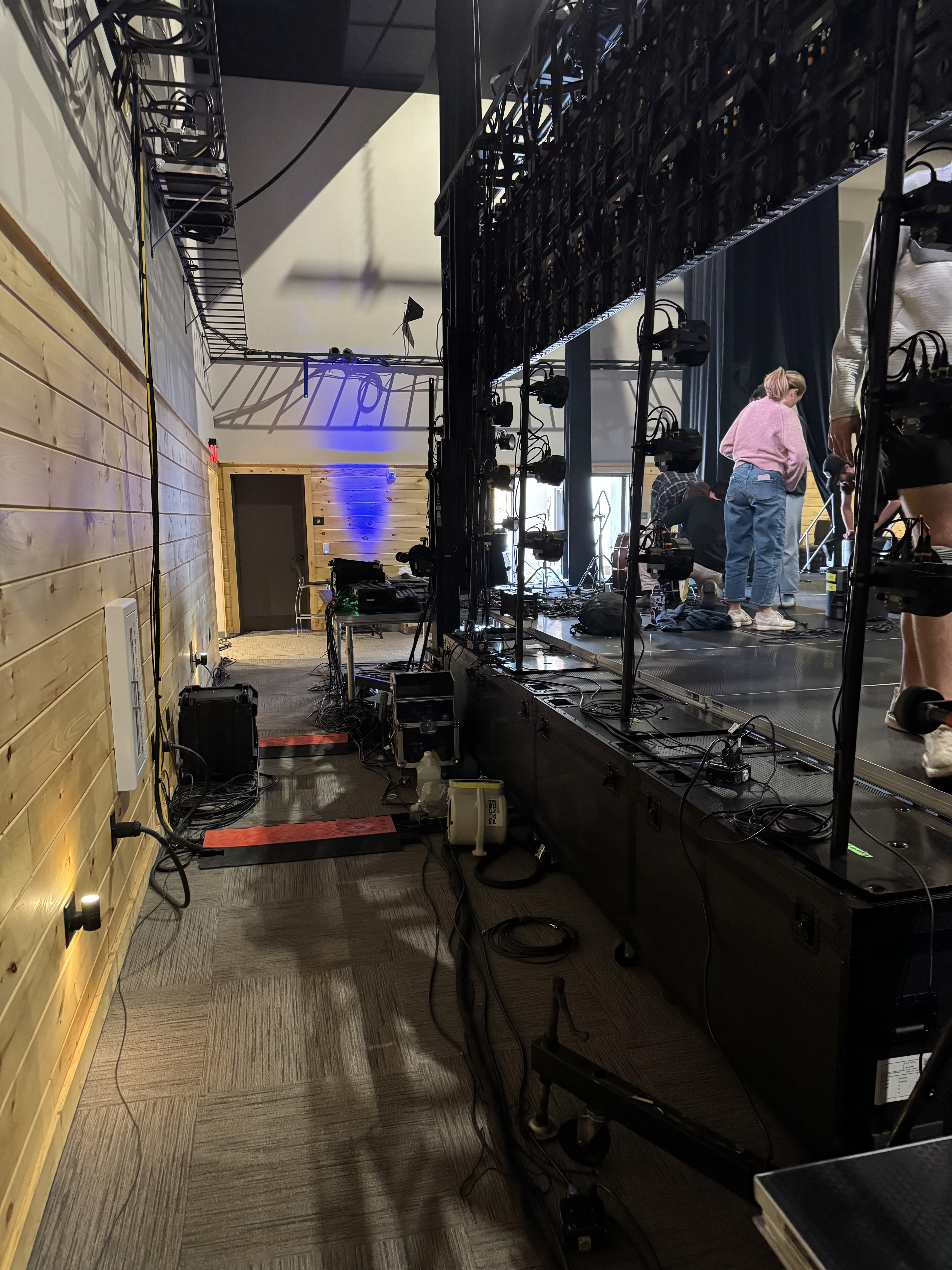 Working in a new venue, I troubleshot and integrated with the existing house systems, including lighting control and networking.