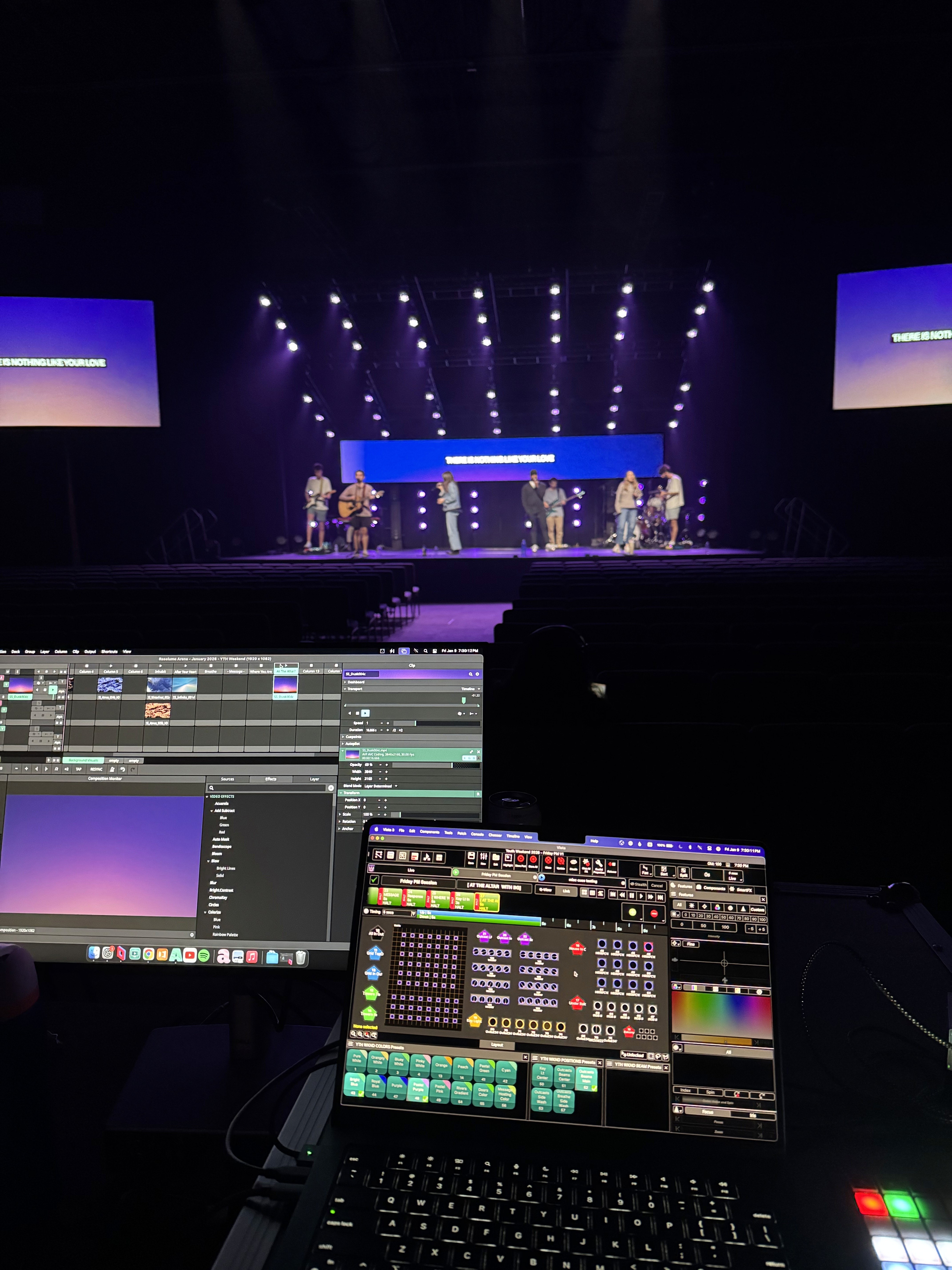 I built a Vista showfile from scratch and programmed and visuals to support a wide range of moments throughout the weekend.
